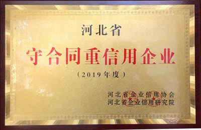 公司荣获2019年度“河北省守合同重信用企业”荣誉称号