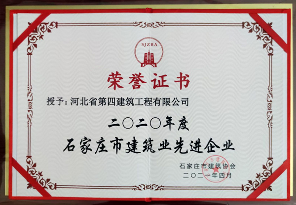 4月9日,公司在石家庄市建筑协会七届三次理事会上喜获“2020年度石家庄市建筑业综合实力十强企业第一名”“2020年度石家庄市建筑业先进企业”两项荣誉;公司副总经理张新煜被评为“优秀企业经理”,公司副总工程师陈增顺被评为“优秀总工程师”,董艳红等11名同志被评为“优秀项目经理”。公司总经理唐志强受邀出席了本次会议。