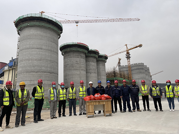 2020年12月5日开始到2021年2月底,项目所在地政府连续发布大气污染预警,项目断断续续停工达一个月,导致工期延误。项目部急业主之所急,预警结束后,立即对各房号施工重新进行细致策划,制定详细的月计划、周计划、日计划,自3月4日起按照部署紧锣密鼓地展开水泥储存库滑模工程施工。在劳力组织上,项目部重新梳理各工序,进一步优化配置各作业工种,同时实行24小时两班倒连续施工。混凝土连续浇筑是滑模施工的关键,项目部将用于混凝土垂直运输的汽车泵增加到3台,筒仓滑模以每天3.5米的速度持续快速滑升。在粉煤灰库滑模施工期间,有一半的天数都在下雨,风力等级都在三级,大家迎难而上,喊出了“刮风当电扇,下雨当流汗,大伙拼命干”的口号,充分发扬四建职工的铁军精神,齐心协力抢抓施工。项目部全体人员勠力同心、通力合作,自滑模开始至4月28日水泥配料站最后一方混凝土浇筑完成,历时56天,提前4天完成施工任务。